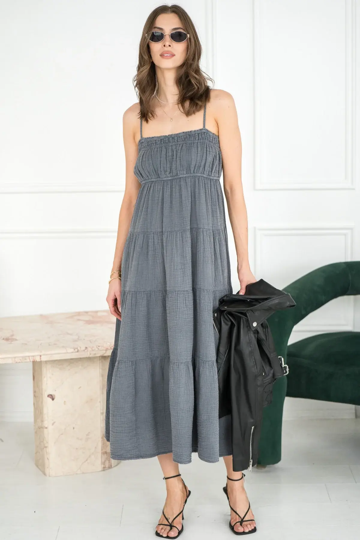 • Description: A simple yet elegant cotton sundress that's comfortable and stylish. Its flowy silhouette and delicate print are ideal for a relaxed day out or a special brunch.